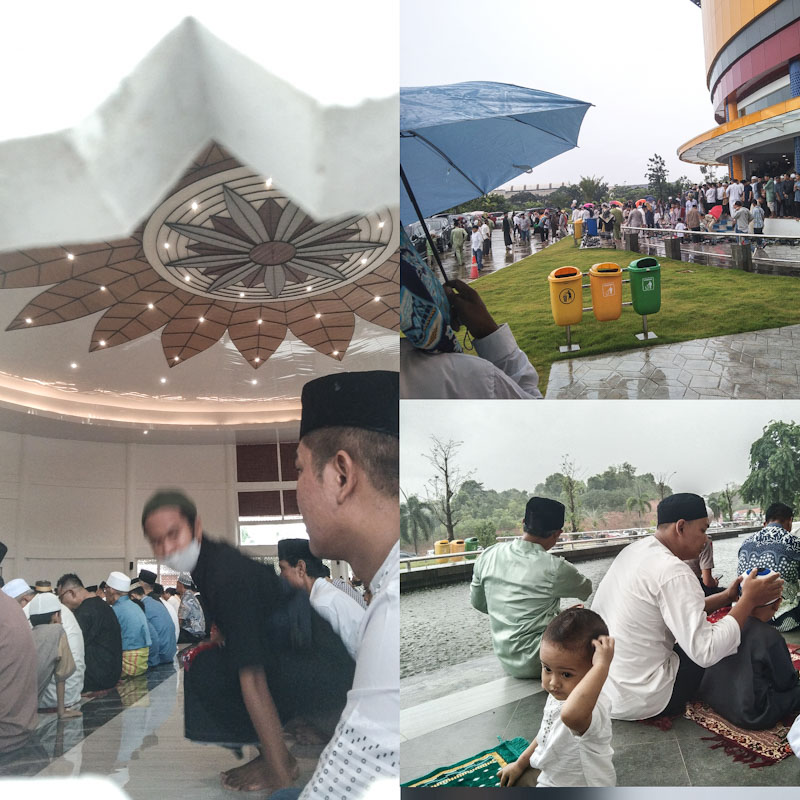 Seperti salat Idul Fitri di lapangan terbuka Dataran Engku Putri Batam Center. Hampir semua barisan (saf) perempuan, mencari tempat berteduh.