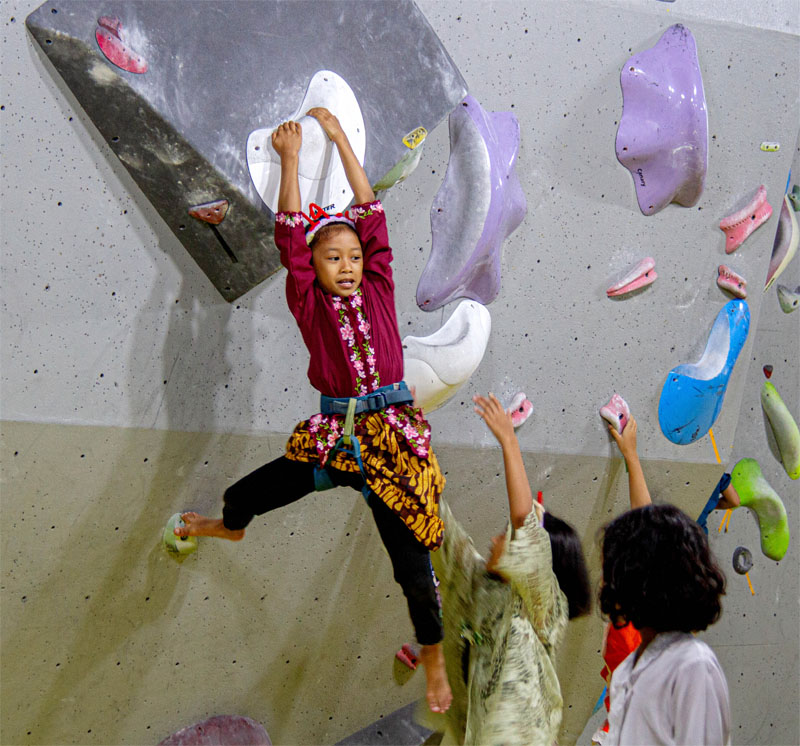 BANDUNG (Kepri.co.id – Xinhua) – Para pegiat panjat dinding (wall climbing) perempuan mengikuti acara Kartini Day Challenge sebagai bagian dari perayaan Hari Kartini, yang diperingati secara nasional setiap 21 April. Dalam kegiatan tersebut, para partisipan melakukan panjat dinding di papan boulder dengan mengenakan kebaya sebagai simbol identitas, keanggunan, dan kekuatan perempuan Indonesia. (hen/ xinhua-news.com)