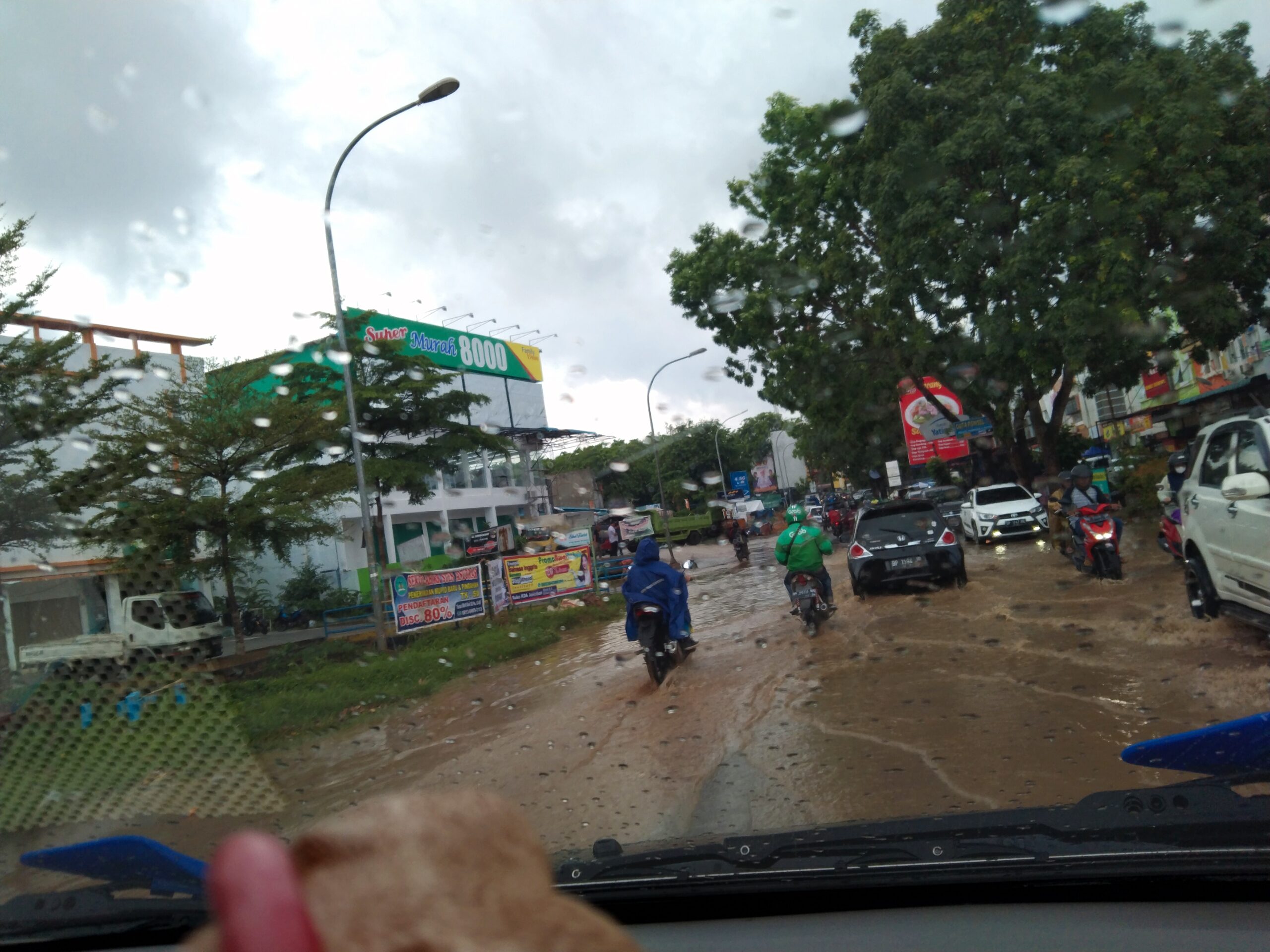 Hujan beberapa menit yang mengguyur Perumahan Cikitsu dan Taman Raya sekitarnya, pada Selasa (22/3/2022) pukul 12.30 WIB, menyebabkan banjir di area drainase eks Sekolah Kaliban Jalan Tengku Sulung, yang kini berubah menjadi supermarket tersebut.