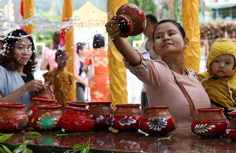 YANGON (Kepri.co.id – Xinhua) – Seorang wanita menyirami pohon Bodhi pada perayaan Hari Bulan Purnama di bulan Kason di Pagoda Botahtaung di Yangon, Myanmar, pada 22 Mei 2024. (F. Xinhua/Myo Kyaw Soe)
