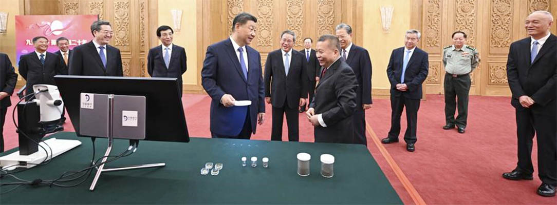 Xi, yang juga menjabat sebagai Sekretaris Jenderal Komite Sentral Partai Komunis China (Communist Party of China/ CPC) sekaligus Ketua Komisi Militer Sentral China, bertemu dengan para perwakilan ilmuwan dan insinyur bidang luar angkasa, yang berpartisipasi dalam penelitian dan pengembangan misi Bulan Chang’e-6 di Balai Agung Rakyat di Beijing. (hen/ xinhua-news.com)