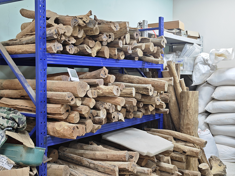 Foto yang diabadikan pada 17 Juli 2024 ini, menunjukkan tumpukan kayu cendana di Kebun Raya Nasional China Selatan (South China National Botanical Garden) di Guangzhou. (F. Xinhua/Lu Hao)