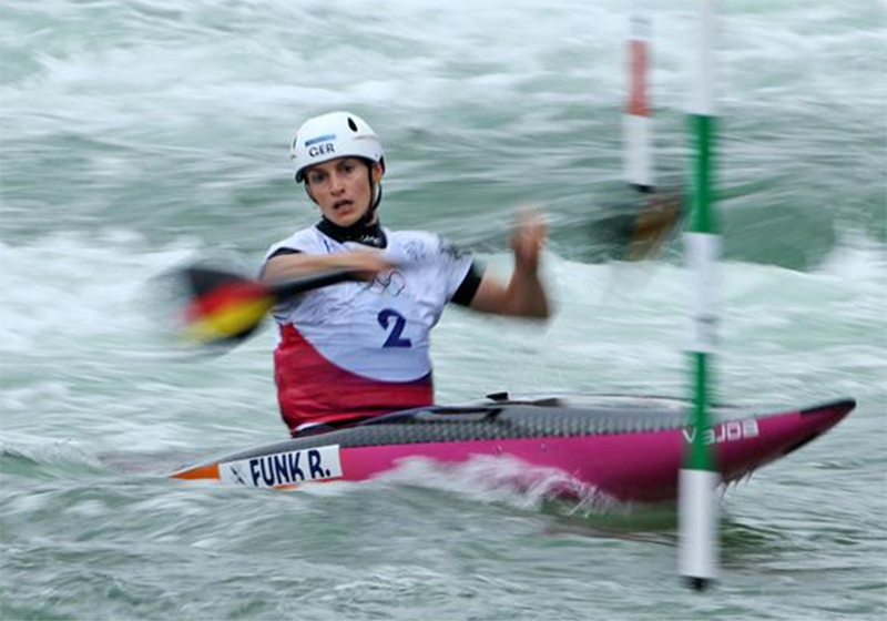 Atlet Jerman, Ricarda Funk tampil dalam nomor slalom kano kayak single (K1) putri di Olimpiade Paris 2024 di Vaires-sur-Marne, Prancis, pada 27 Juli 2024. (F. Xinhua/Shen Bohan)