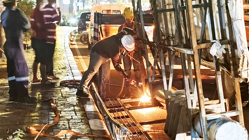 Billboard tak berizin ditumbangkan di kawasan Pollux Habibie dan Fanindo Sanctuary Garden, Selasa (27/5/2025) malam. (Sumber: BP Batam)
